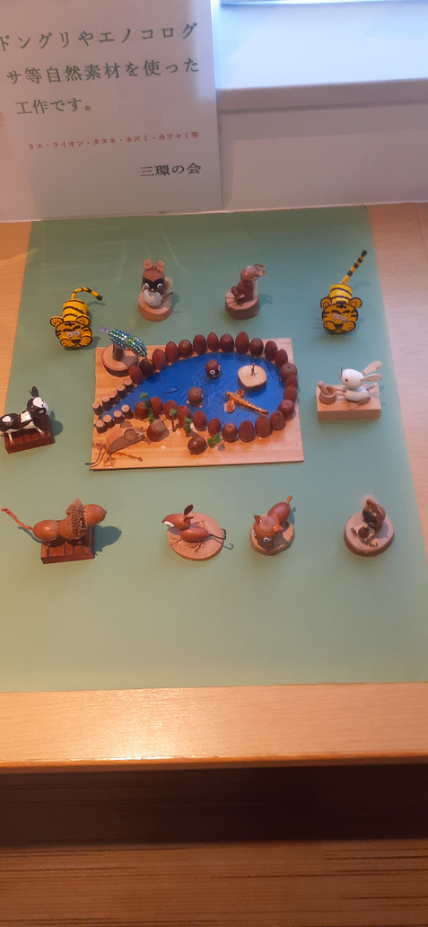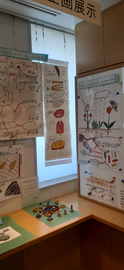 - 自然素材を使った工作を展示したり、ごみのリサイクルについてパネルで紹介します。